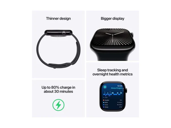 ابل ساعة سيريز 10 جي بي اس - 46 ملم - هيكل من الألومنيوم باللون الأسود مع حزام رياضي أسود - مقاس سمول/ميديم