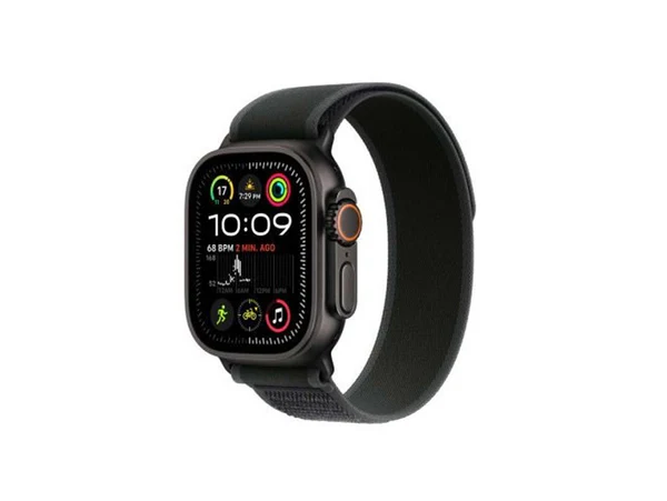 ابل ساعه الترا 2 جي بي اس + خلوي هيكل من التيتانيوم الأسود مقاس 49 ملم مع حلقة سوداء - مقاس سمول/ميديم