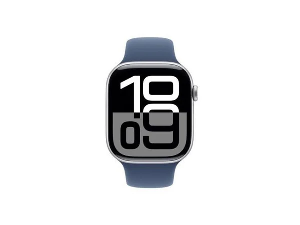 ابل ساعة الجيل العاشر جي بي اس - 42 ملم - هيكل من الالمنيوم الفضي وسوار رياضي من الدنيم - مقاس سمول/ميديم