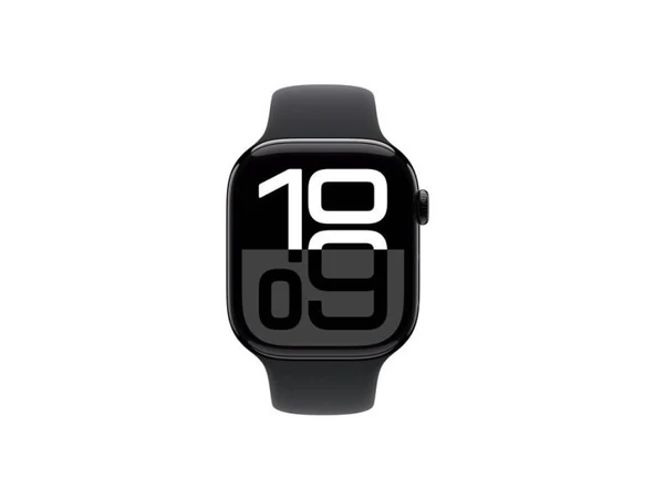 ابل ساعة الجيل العاشر جي بي إس - هيكل من الألومنيوم باللون الأسود مقاس 46 ملم مع حزام رياضي أسود - مقاس ميديم/لارج
